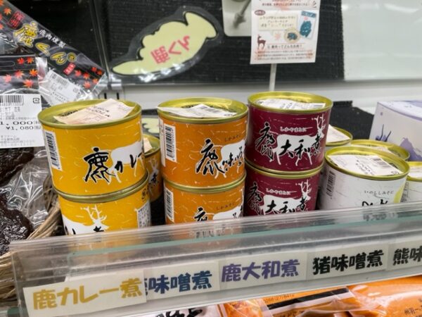 燻製工房もみじ様の製品を取り扱っています。地元猟師が手作りした鹿の燻製は旨みたっぷりです。缶詰は気軽にジビエを楽しむことができます。