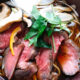 3 鹿肉を約100℃の温度で油通し、中心まで熱が通ったところで油切りしておきます。