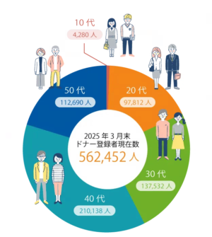 2025年3月末時点で登録者の半数以上が40歳代以上の方であるため、登録者の減少が危惧されています。