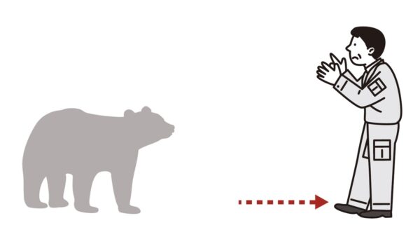 ②クマから目線をそらさず(背後を向けない)、ゆっくりとその場を離れる