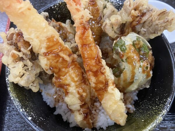 「海老と舞茸の天丼」は、北信州産の採れたて舞茸をふんだんに使用しているとのこと!