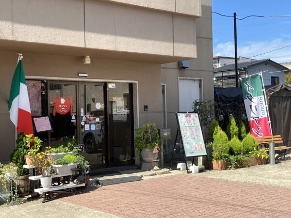 中野市の中心街を歩いていると、赤・白・緑の「イタリアン」の旗が目を引きます