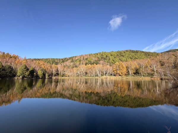 白樺林が水面に映り込むので、紅葉の時期は絶景です![]()