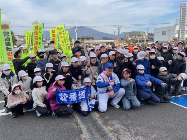 「安全で安心して生活できる地域社会の実現は、私たちの願いです。今、私たちは中野市・山ノ内町の治安を守るため、『犯罪と交通事故をこの街からかっとばせ』を合言葉に、この地域の一人ひとりがお互いに手を取り合って、力をあわせ、日本一安全で安心な街を目指します。そして、これから先も地域安全に取り組むみなさんのことを、全力で応援していくことをここに宣言します。令和7年12月2日 横浜DeNAベイスターズ 牧秀悟」