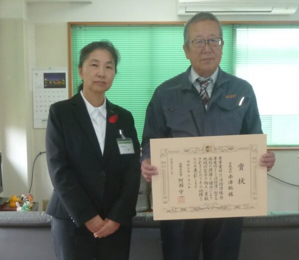 表彰状・記念品は、令和7年10月20日(月)有限会社赤津組において、北信地域振興局長から授与させていただきました。