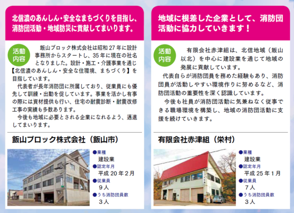 有限会社赤津組様におかれては、従業員が消防団員として地域の防災活動に積極的に参加されており、災害等発生時には消防団活動を優先できるよう社内体制が整備されているなど、会社全体で消防団活動への理解と協力とともに、地域の安全・安心に対する取組が評価されました。