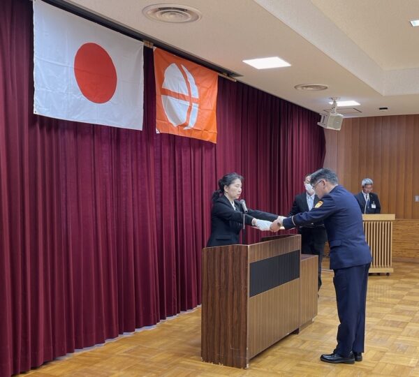 三森局長からは、地域住民の生命と財産を守るため、強い使命感と責任感を持ち、長年にわたって消火・救急・救助活動などの消防業務に尽力されたことへの感謝と敬意をお伝えするとともに、これまでの豊富な経験と卓越した知識を活かし、今後も業務の強化・後進の指導に御尽力いただくことをお願いしました。