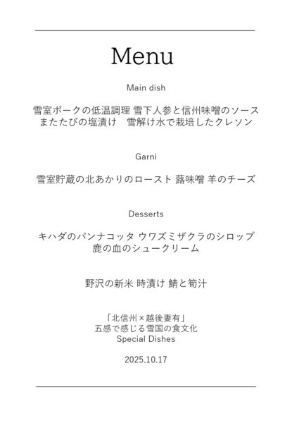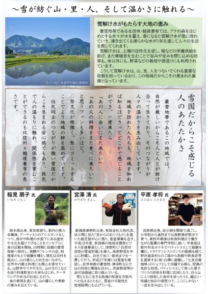 今回は、北信州と越後妻有の食文化を五感で楽しむことをテーマに、さまざまなプログラムをご用意しました。
