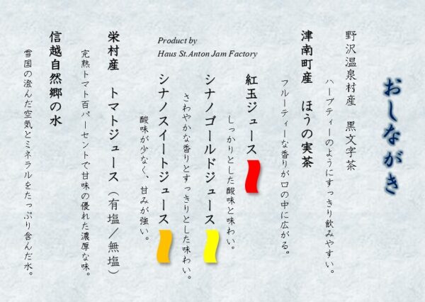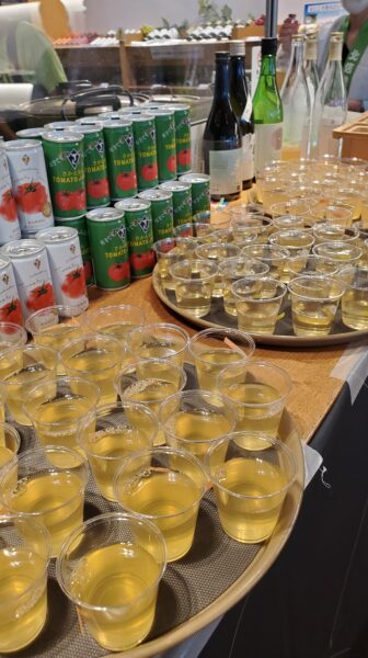 さらに、地域で作られたリンゴジュースやトマトジュースの飲み比べも行い、参加者の皆さんに雪国の味を存分に楽しんでいただきました。