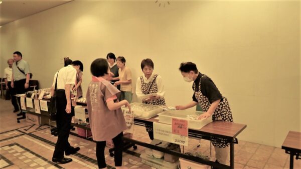 果物やトウモロコシなど農産物、パンやおこわ、おやき、お菓子、手作りの農産物加工品、工芸品と様々な物が販売されました。