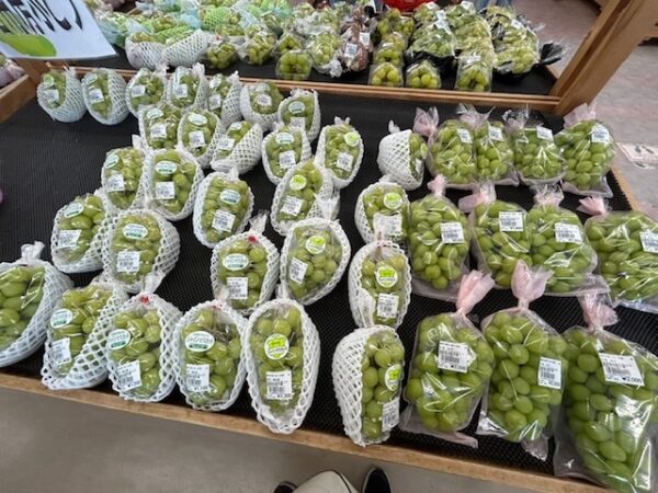 現在直売所では、露地栽培のシャインマスカットとクイーンルージュ🄬が販売されています。