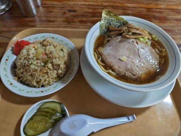 当初はフェアのサイトにお勧めとして登録されているラーメン・炒飯セットにしようと思っていたのですが…、注文の直前に隣の席に運ばれてきたラーメンの器の大きさを見て考え直し、半ラーメン・炒飯セットにしました。