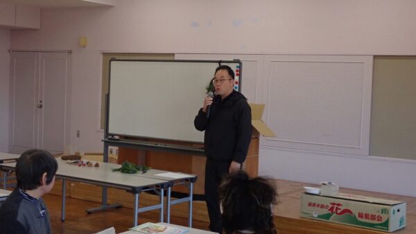 まず、出前授業として、センター職員が、長野県と北信地域の花の生産状況や出荷の流れを講義しました。