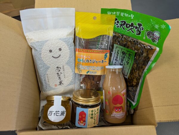 ☝こちらは、前半の抽選で当選者のみなさまにお送りした農産物加工品セットの一例です。