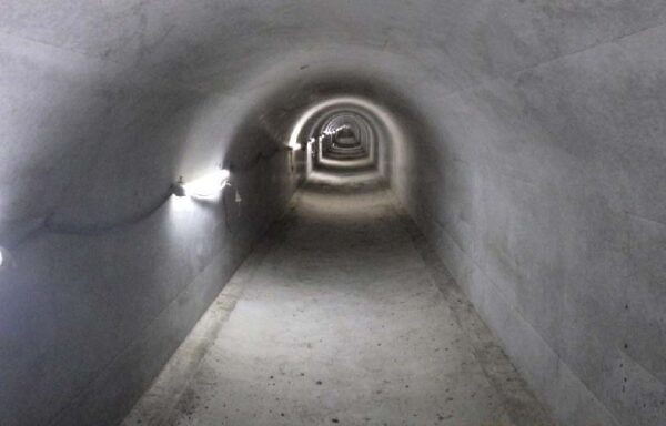 工事現場では、重機が活躍する中、慎重に掘削作業が進められました。現場が国有林内に位置しているため、周辺の自然環境に十分配慮しながら作業が行われています。現在は、トンネル内部をコンクリートで覆う「覆工作業」が進行中です。覆工作業が完了した後には、「裏込め注入」を実施し、トンネル工事は完了となる予定です。