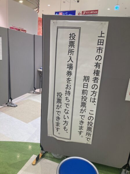 だから、今日仕事帰りに、アリオ上田にある『期日前投票所』に行ってきました。