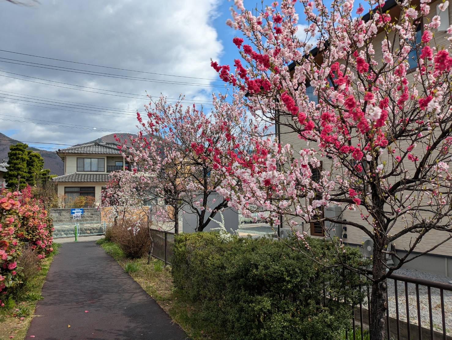 上田合同庁舎北側の花モモ満開です