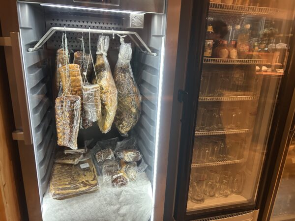 店内に入るとすぐに熟成庫が!!!生ハムやサラミの熟成をしているそうです。