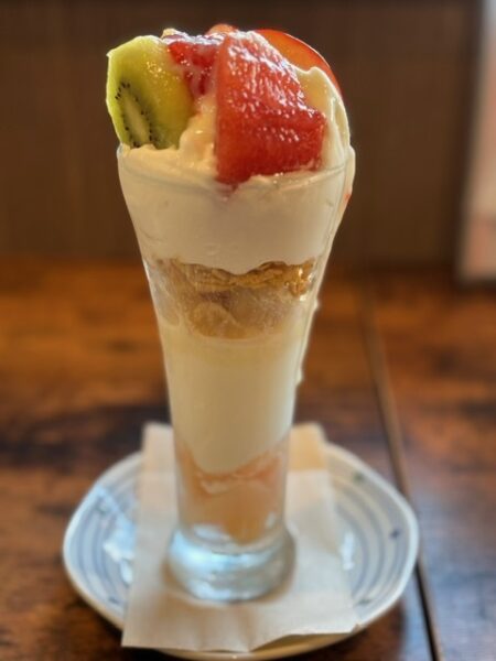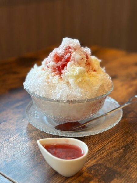 かき氷はふわふわ、パフェは果物がたくさん載っていて、