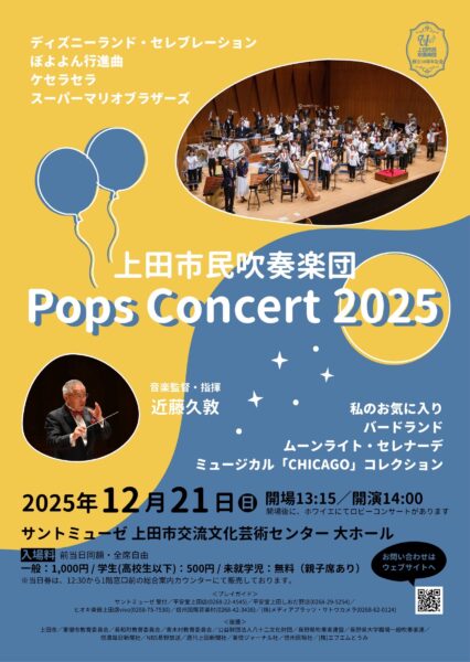 上田市を中心に活動している上田市民吹奏楽団のpops Concert 2025が開催されます!