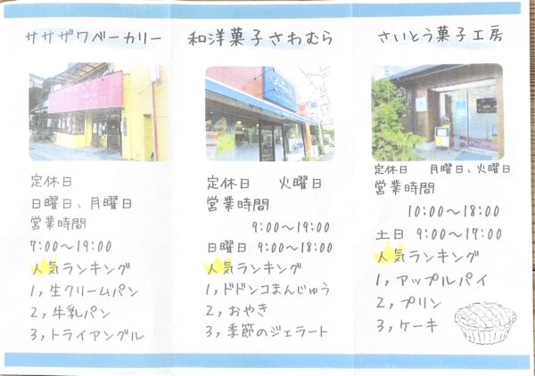 丸子地域のお店、さいとう菓子工房、和洋菓子さわむら、ササザワベーカリー、