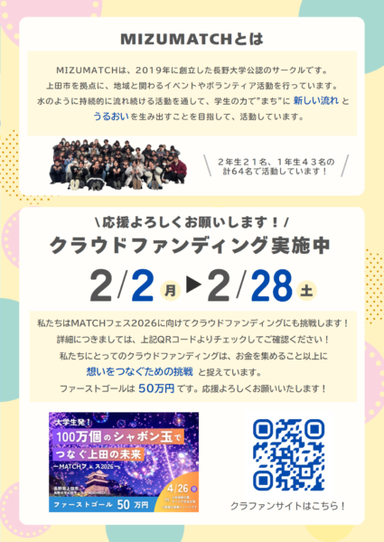 長野大学公認サークルMIZUMATCHが、今年もMATCHフェス2026を開催します!!!