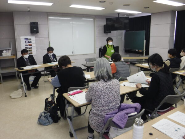 まず視聴覚室において、環境課より『長野県のごみ排出量の現状とごみ減量に向けた取り組み』について、宮坂先生からは『キッチンから始めるエコロジー~環境と健康に配慮した食生活~』というテーマで講義を行いました。参加者の皆さんは熱心に耳を傾け、質問もたくさんいただきました。