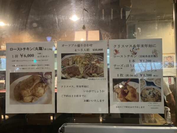 お持ち帰りのオムライスや、クリスマスのチキン等もあるようです。