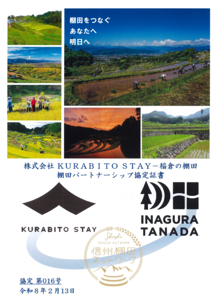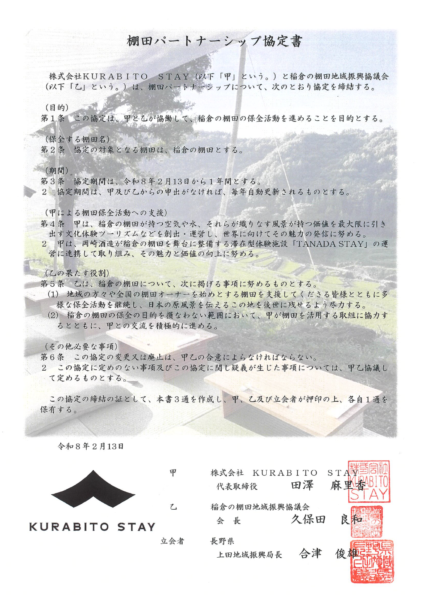 ㈱KURABITO STAYと稲倉の棚田地域振興協議会が棚田パートナーシップ協定を締結!