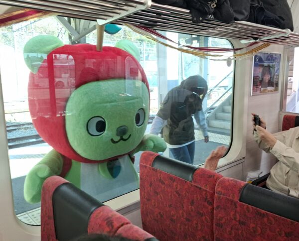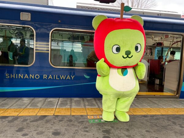 ホームでは長野県観光PRキャラクター アルクマがお出迎え。