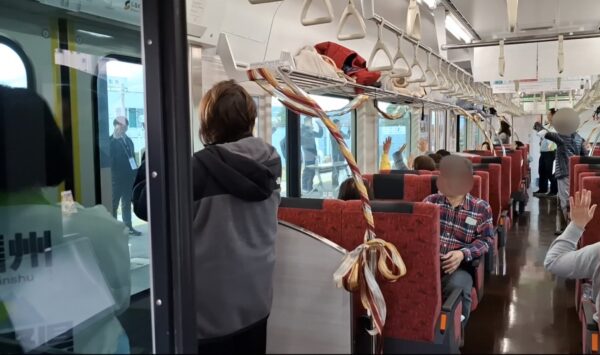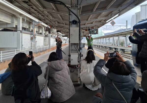 終着の上田駅のホームでは、最後になんと「殺陣(たて)サークル」の方々がお出迎え。