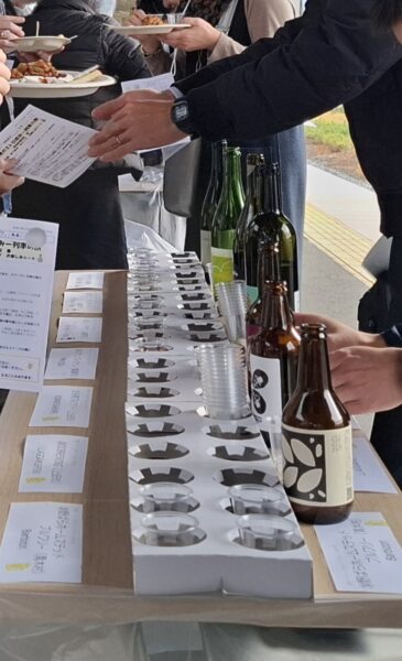 このあとも車内では、地域が誇る10種類のワイン・日本酒・クラフトビールを少しずつ、贅沢に飲み比べていただきます。