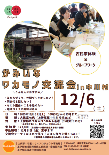 【12/6(土)開催!】江戸時代から続く!古民家『七代』にて、かみいなワカモノ交流会in中川村、開催します!!