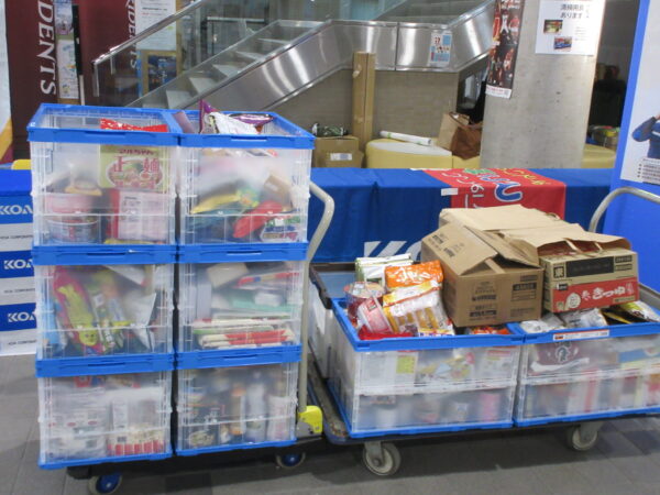 2日間の開催期間中、皆さまのご厚意によりお菓子やレトルト食品、インスタント食品など合計