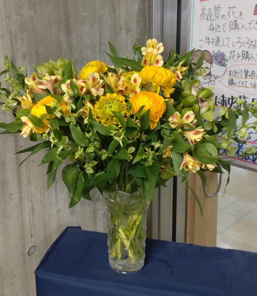 温かさを感じさせる、明るい黄色のアレンジメントです