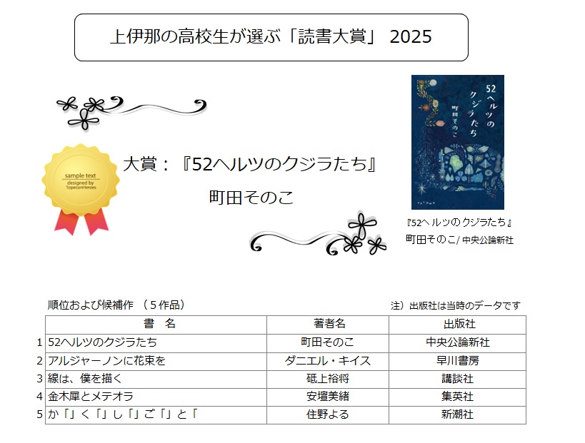 “上伊那の高校生が選ぶ「読書大賞」” 過去の結果はこちら