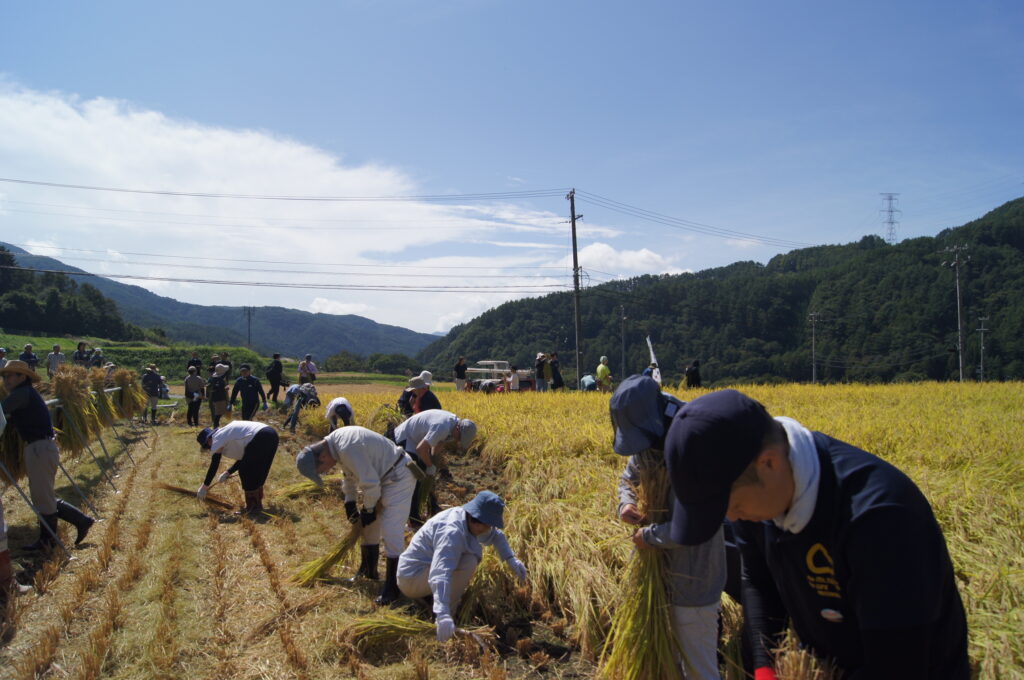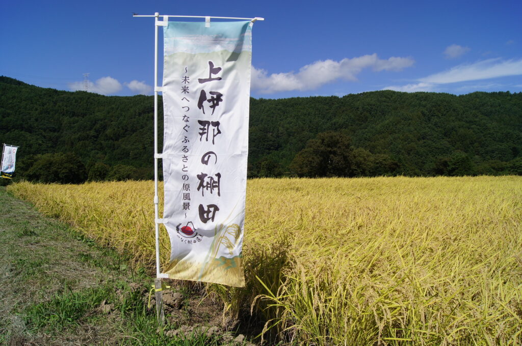 伊那市にある【山室の棚田】でも、9月末に稲刈りが行われ、秋の実りを感じる