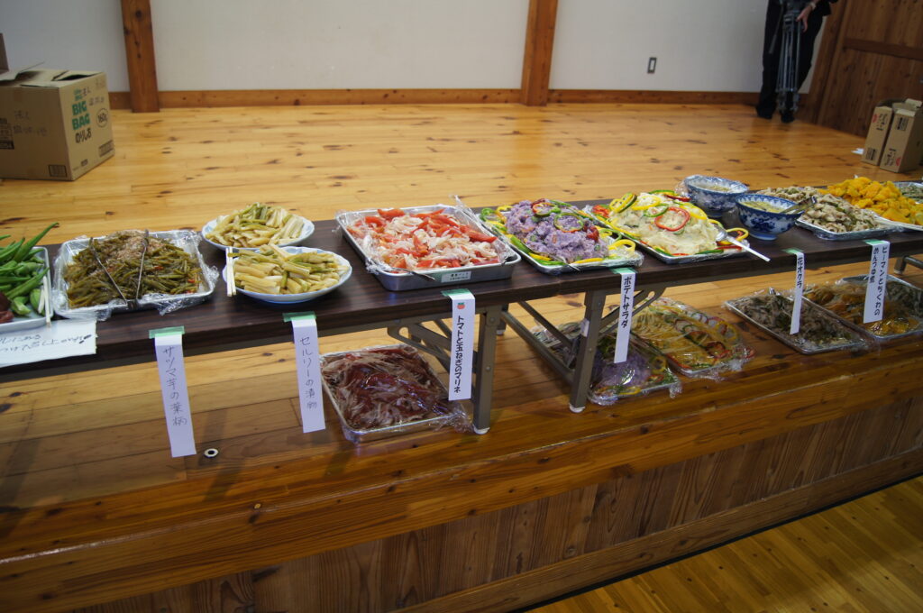 稲刈りの後は、毎回恒例となっている食事会。地元の食材を使った料理を振る舞っていただきました。