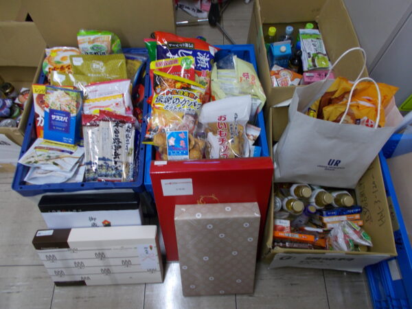 たくさんの食品の寄付をいただきました。ご協力いただいた皆様本当にありがとうございました。