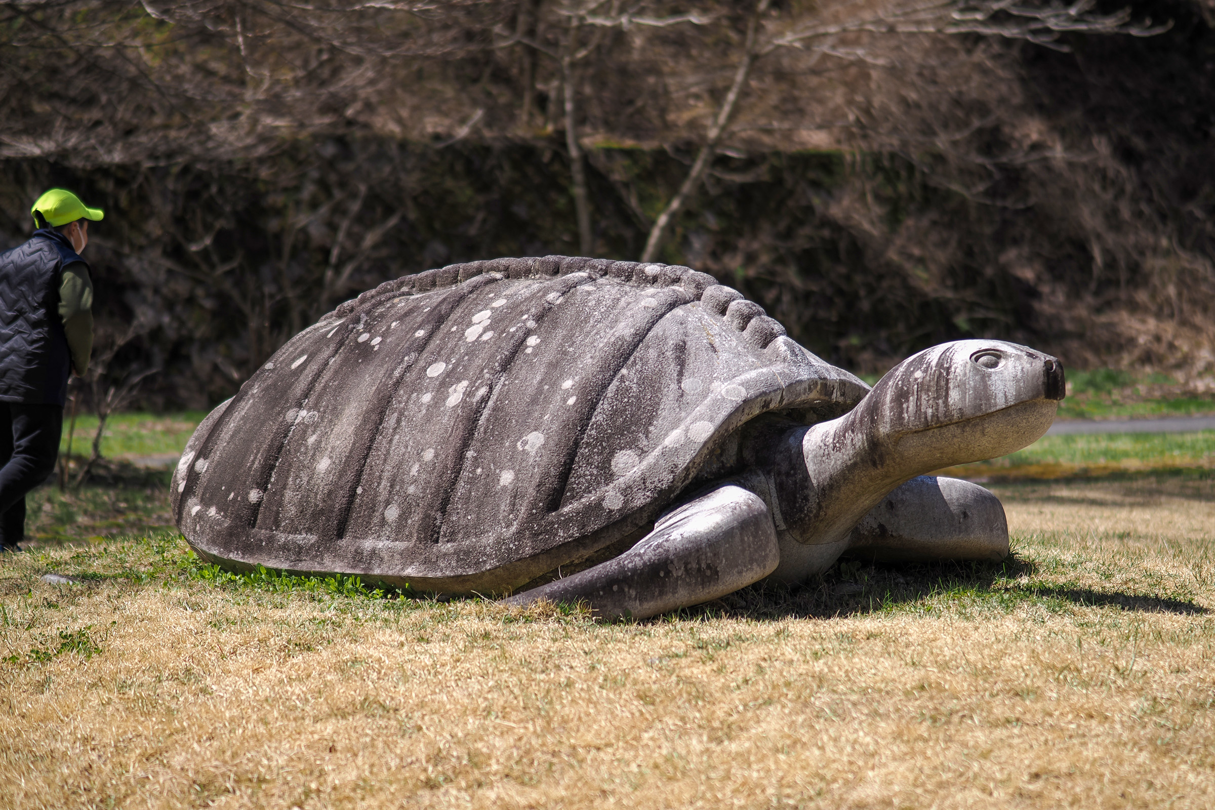 公園内にはマンモスや恐竜のオブジェもあり、この亀だったら竜宮城まで行けるかもしれないなぁとぼんやり思いを馳せていたら、「これはアーケロンだよ!」と教えられ、春の夢から覚めました(笑)。