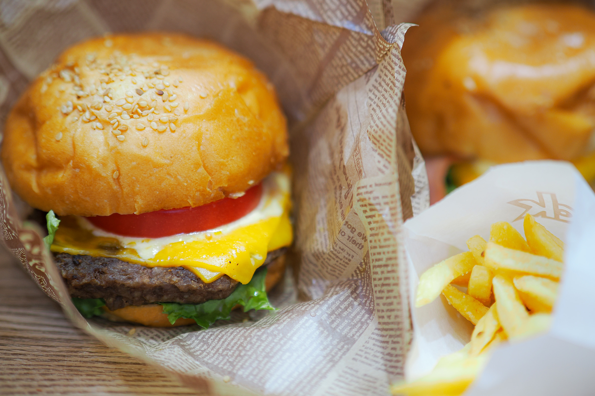 目的地まで持ち運んだせいで写真を撮る前にバンズの形をすこし崩してしまいましたが、厚切りトマトとチーズに挟まれた肉厚のパテは食べ応え満点で、夢中でかぶりつきました♪
