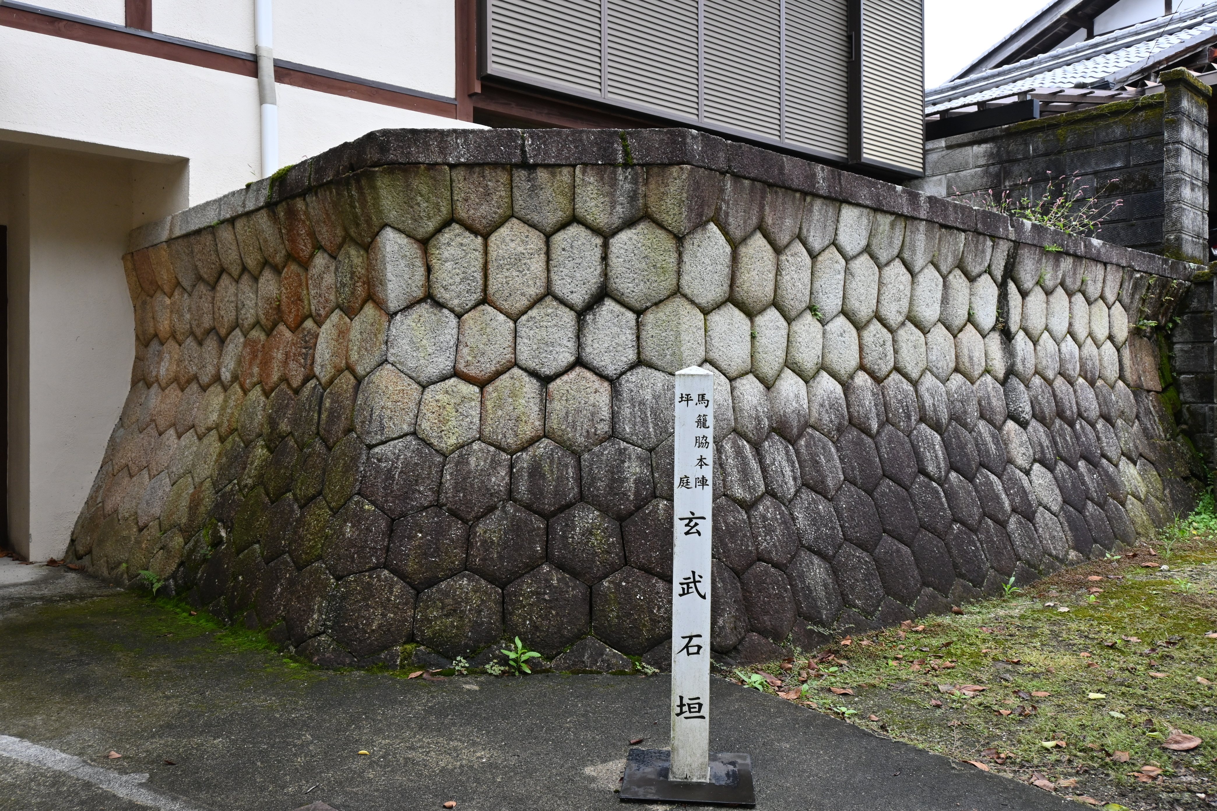 北方の守り神・玄武を意識してすべて亀甲型(六角形)とした「玄武石垣」。