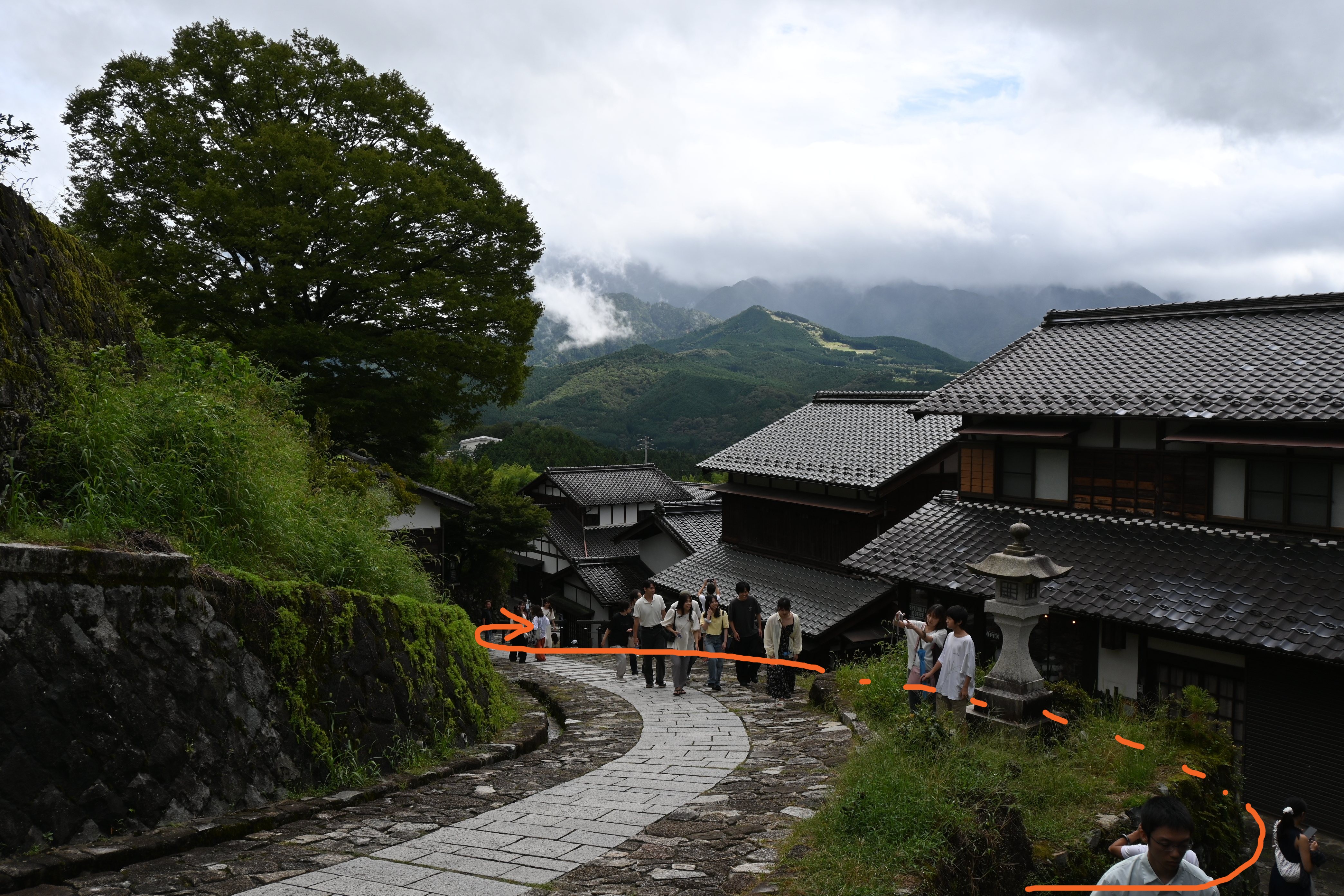馬籠宿は、終始坂です。宿場の端から端まで平地がないと言っても過言ではありません。