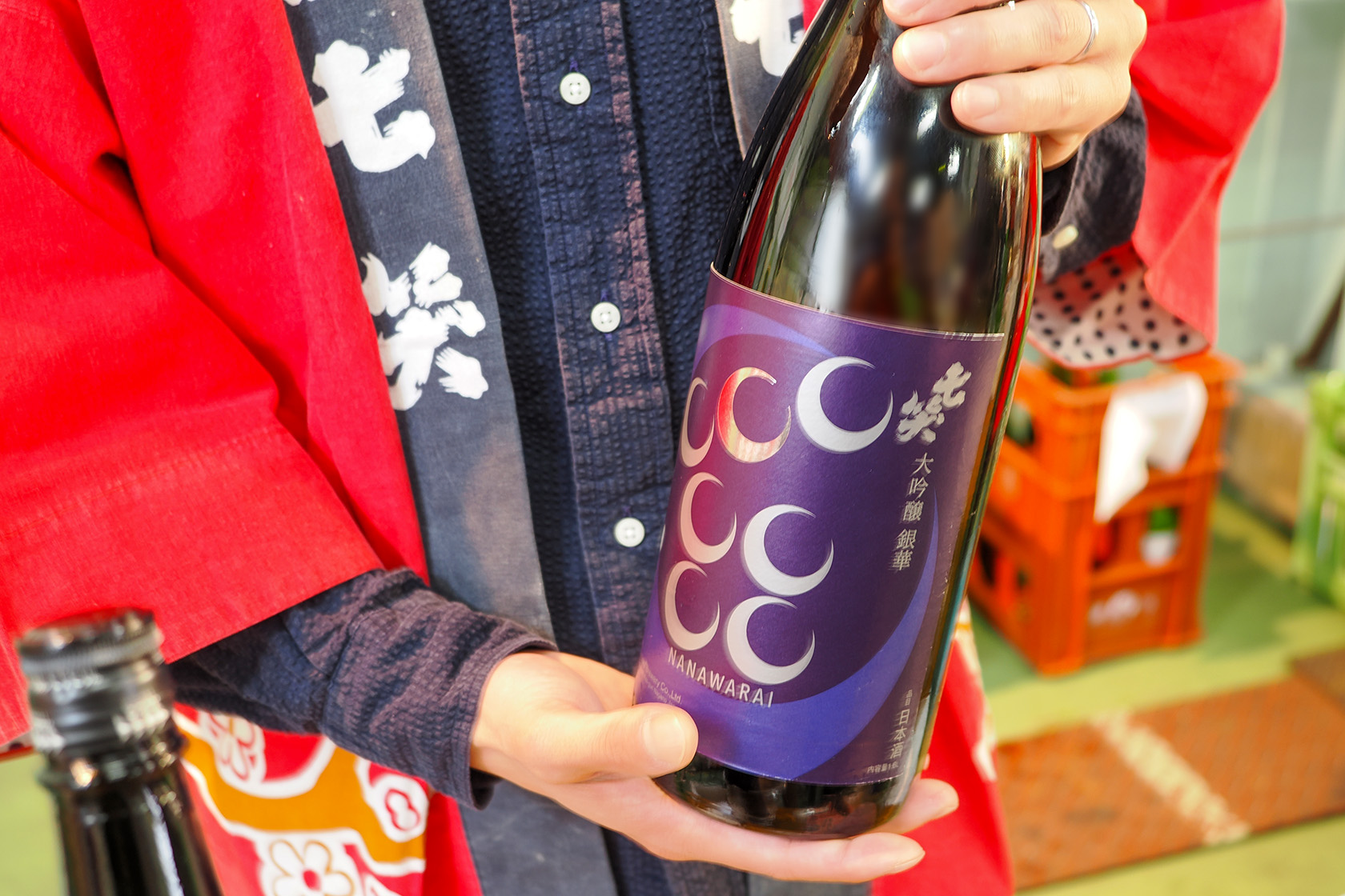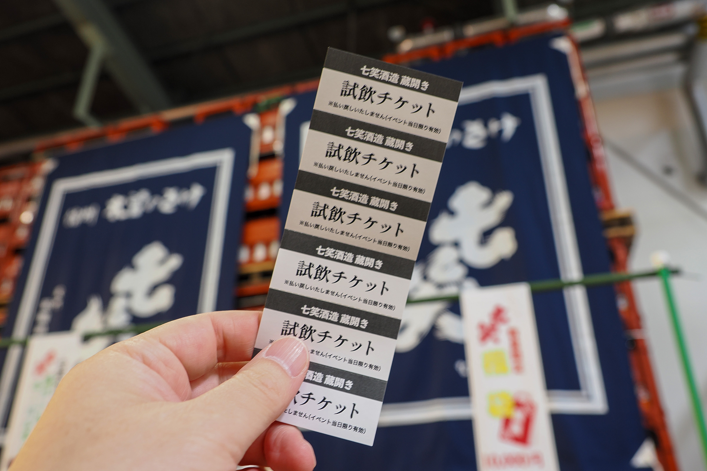 まず初めにこちらは、七笑酒造の会場です。写真の酒は「七笑 大吟醸 銀華」です。