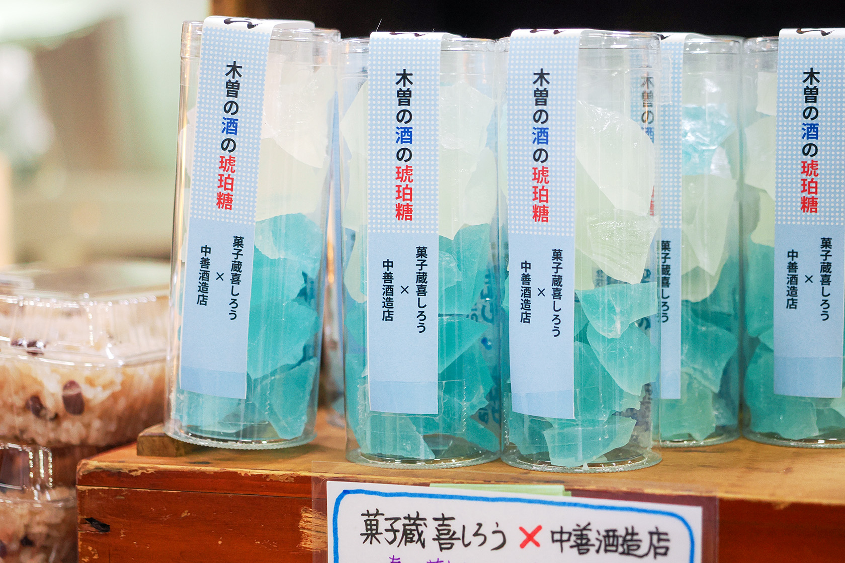 「木曽の酒の琥珀糖」も、このイベントの時だけ出会える限定商品です! 白とブルーで2種類の味が楽しめます。