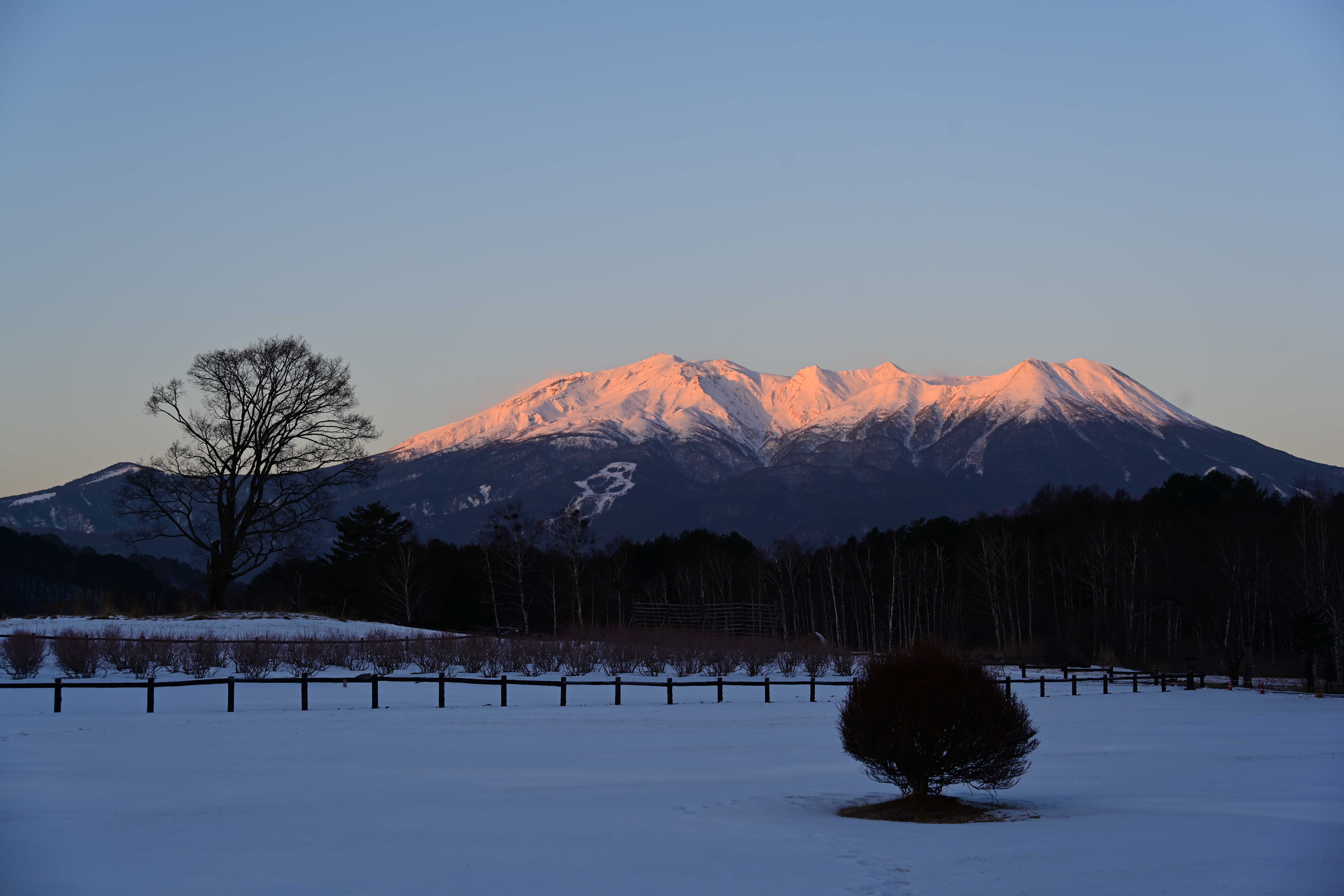 前夜が一晩中快晴だったので星を見た後、朝は木曽馬の里で御嶽山のモルゲンロートを撮影。