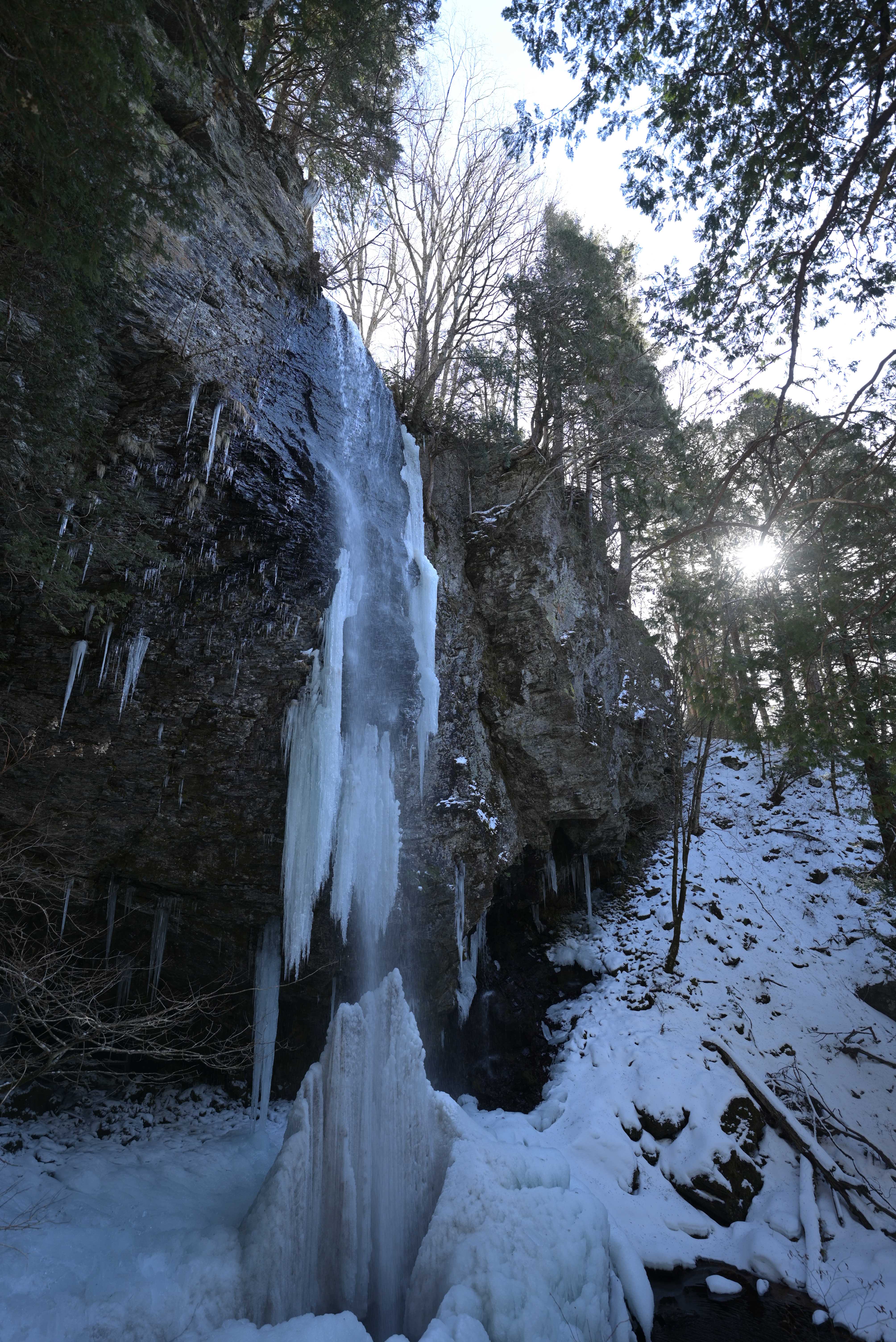 滝までの雪はやわらかかったですが、滝周辺はカッチカチに凍っていますので、アイゼン等の装着をお勧めします。