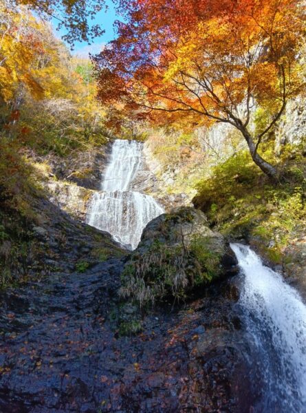 まず、開田高原に行く途中に唐沢の滝へ寄りました。(冬期は通行止めです。)写真撮影をしている人が何人もいました。また、旧飛騨街道をトレッキッグする方もいました。