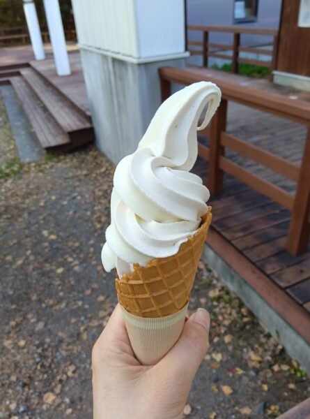最後に開田高原アイスクリーム工房でソフトクリームを食べました。(11月のフレーバーは栗でした。) 右端の写真は開田高原ではありませんが、帰りに寄った清博士の安倍晴明のお墓です。