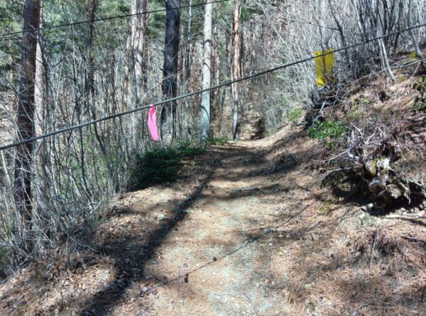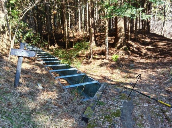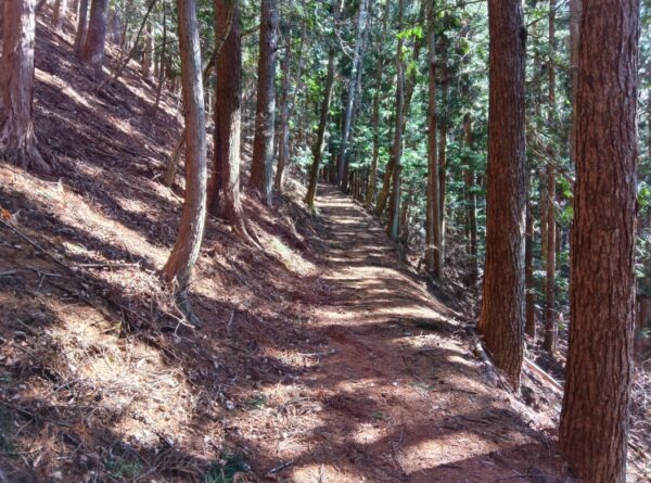 山頂への途中に堀切の跡が残っていました。 四阿から5分ほどで山頂到着です。